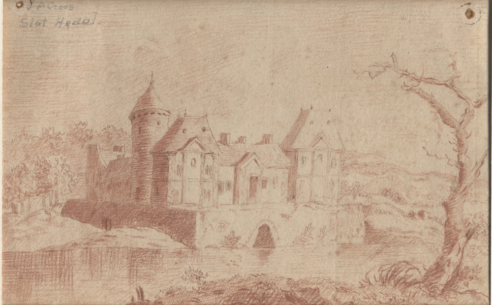 Gezicht op het nieuwe gedeelte van Slot Hedel met tw...