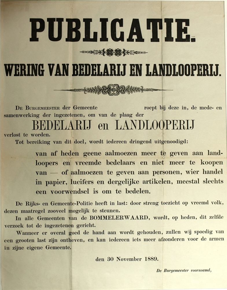 Publicatie burgemeester, wering bedelarij en landlop...