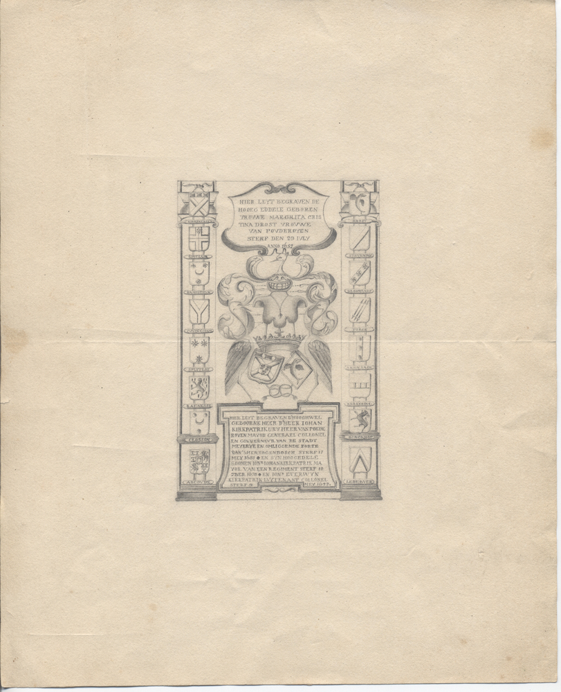 tekening op papier van het grafmonument van de famil...
