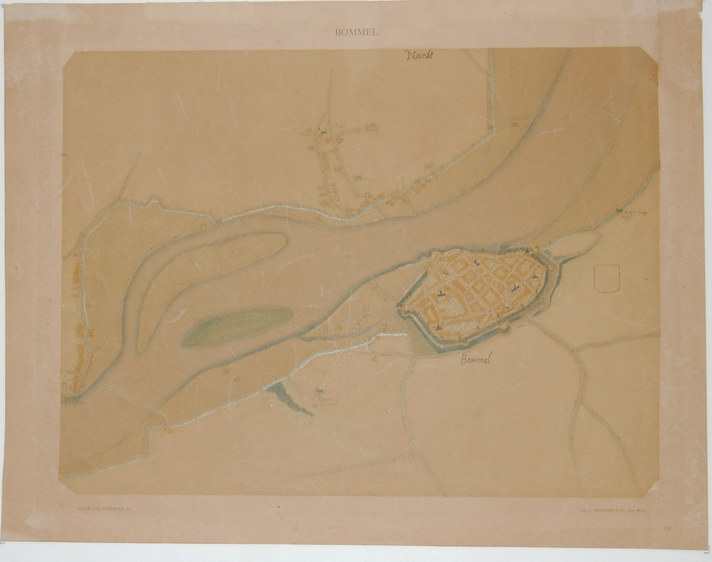 plattegrond van Zaltbommel met stratenpatronen, grac...