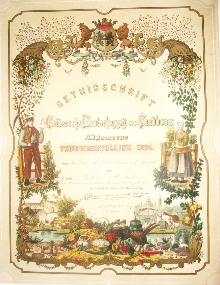 Getuigschrift voor F.W. de Virieu, 1e prijs bloemen ...