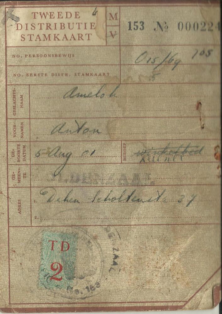 Tweede Distributiestamkaart op naam van Anton Amelok.