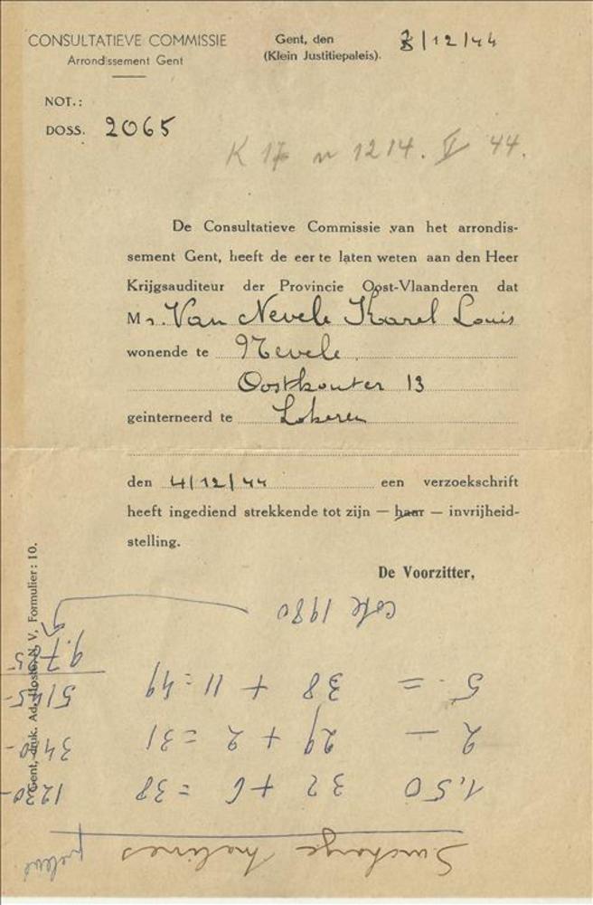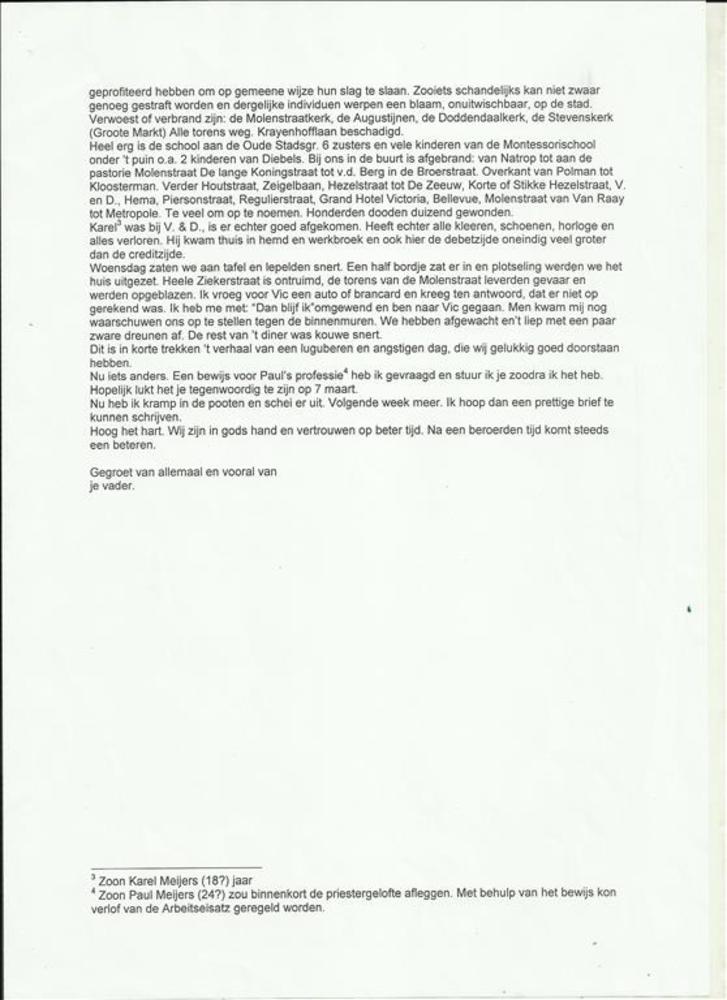 Brief van vader Henri Meijers ( 59 ) Ziekenstraat 16...