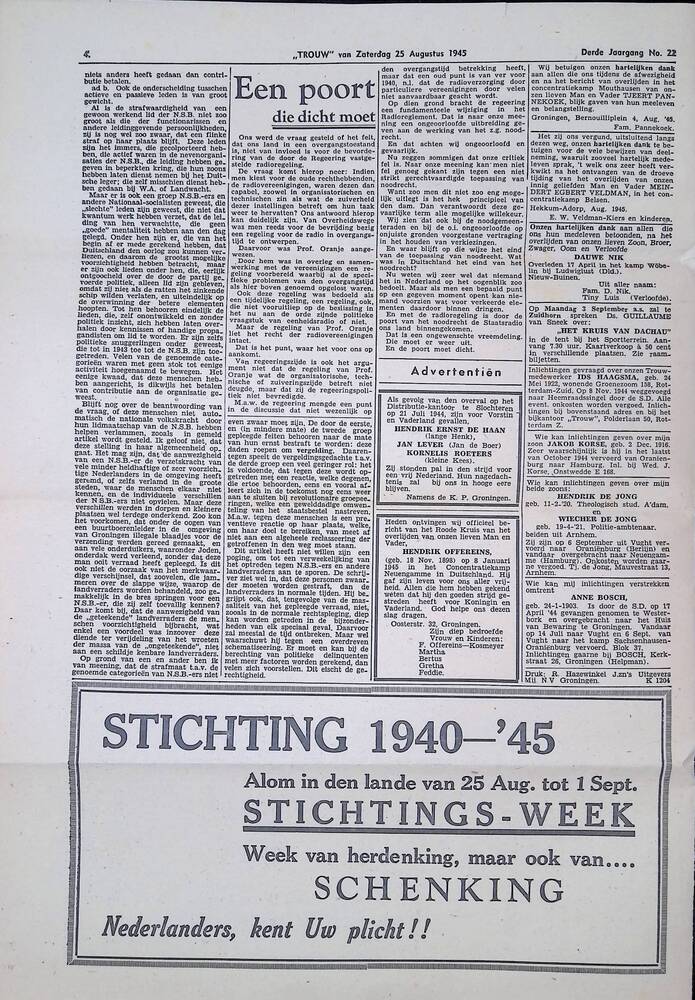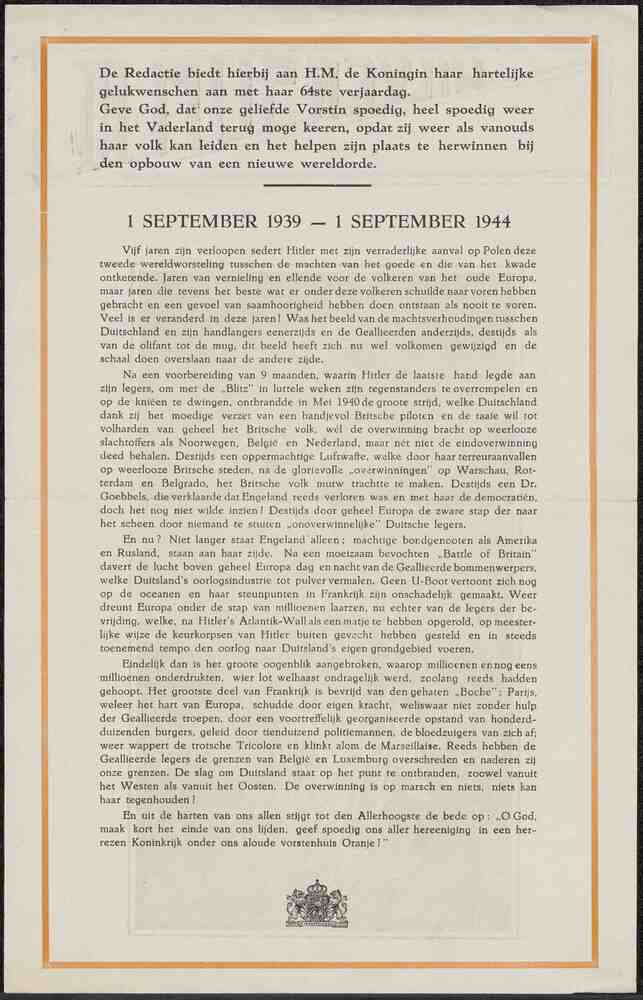 Brochure met gedrukte versie van dagboek bevrijding ...