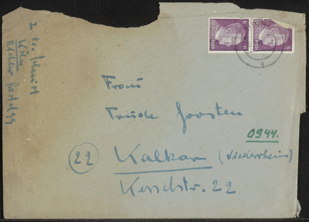 Brief in enveloppe. 4 april 1944. Aan den heer G.C. ...