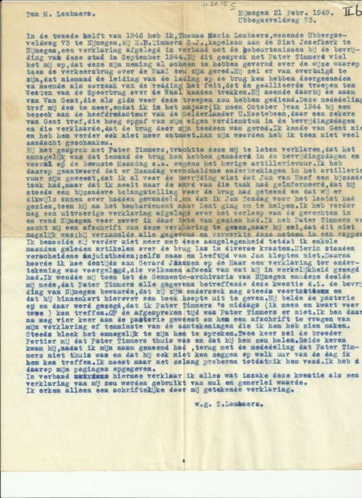 Brief van P v. Oene aan C. Hamers 1948 - 1949