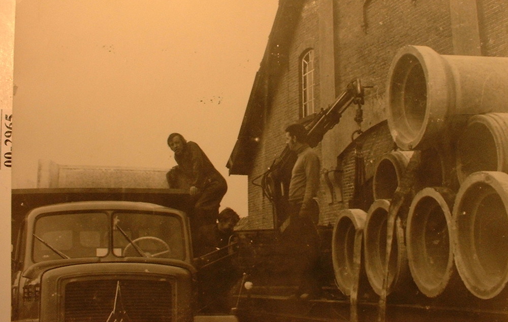 Het lossen van rioolbuizen bij de boerderij de Zilve...