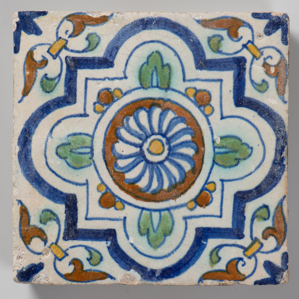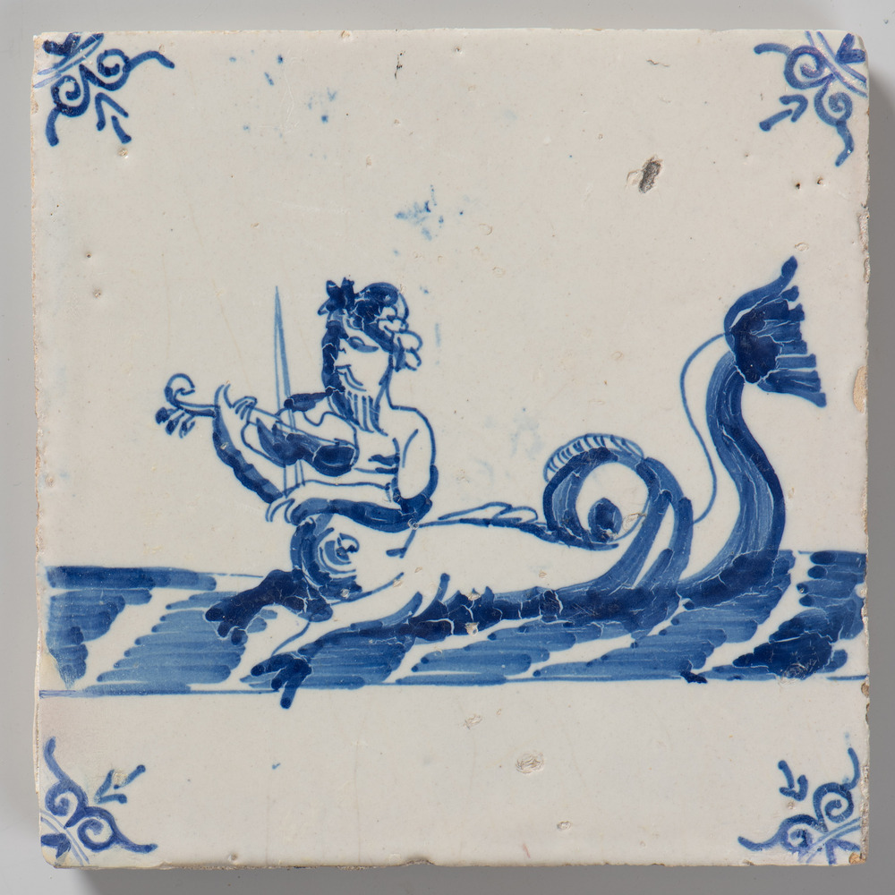 tegel van keramiek met tinglazuur, voorstellende: vi...