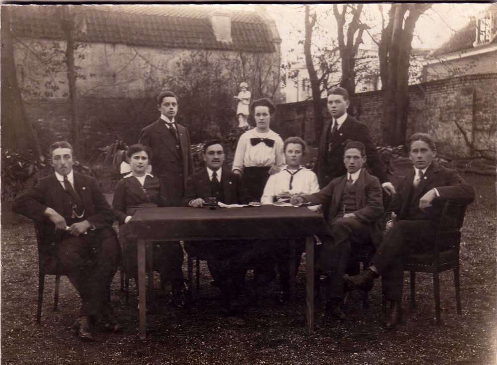 Bestuur Olympia in de tuin van het Nutsgebouw.