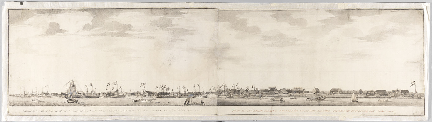Gezicht op de stad Paramaribo met het fort Zeelandia...