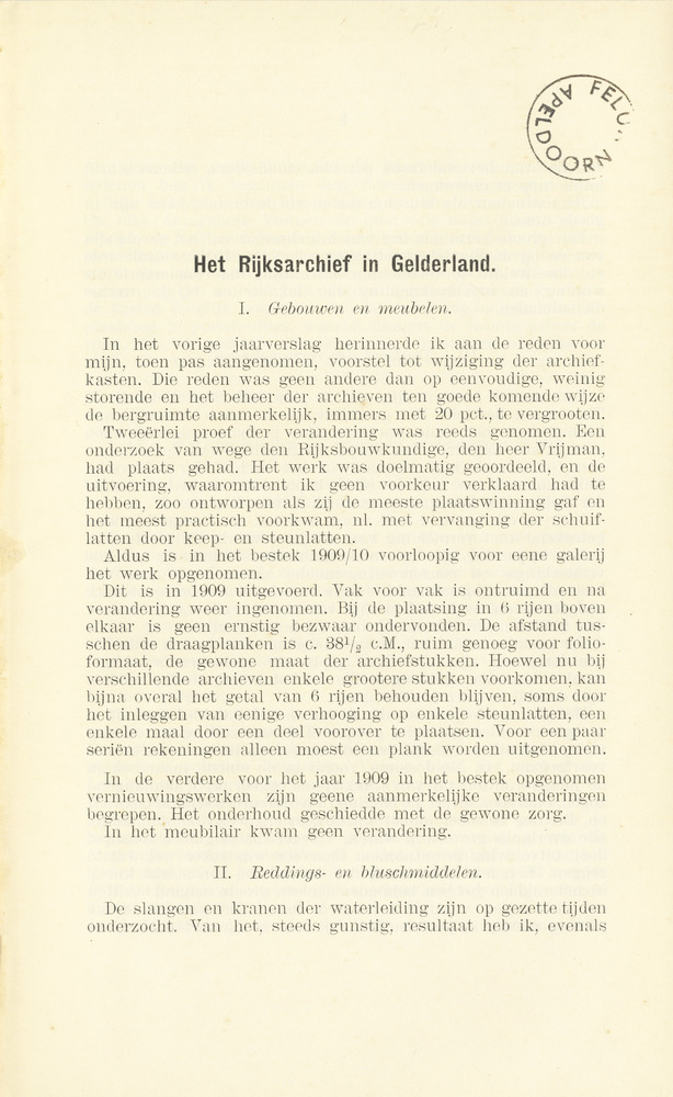 Het Rijksarchief in Gelderland : 1909