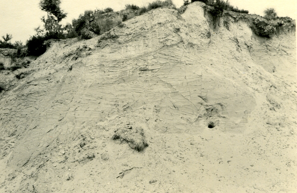 Zwart-wit foto van de zandafgraving in de omgeving v...