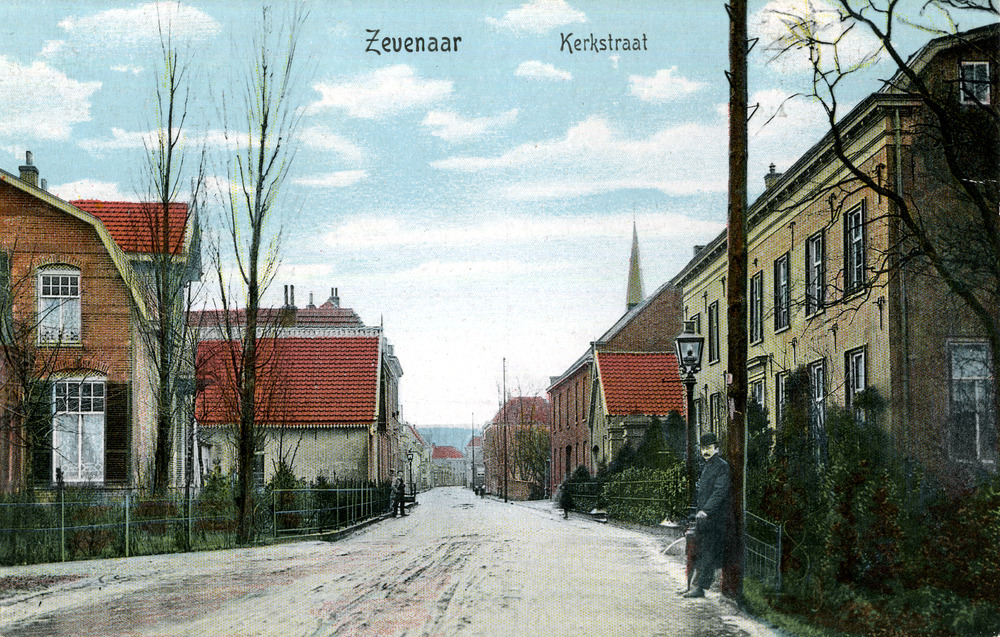Ansichtkaart van de Kerkstraat te Zevenaar circa 1920