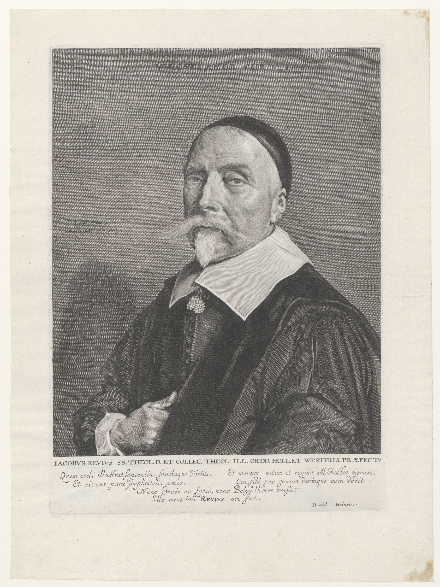 Portret van Jacobus Revius met gedicht van Daniël He...