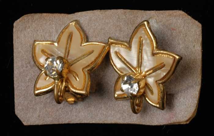 Drie paar oorbellen, clip met bladvorm van goudkleur...