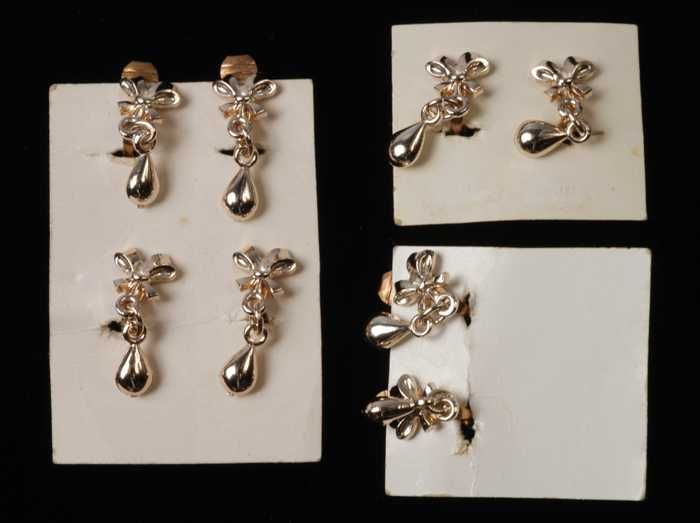 Vier paar oorbellen, clip met goudkleurig strikje me...