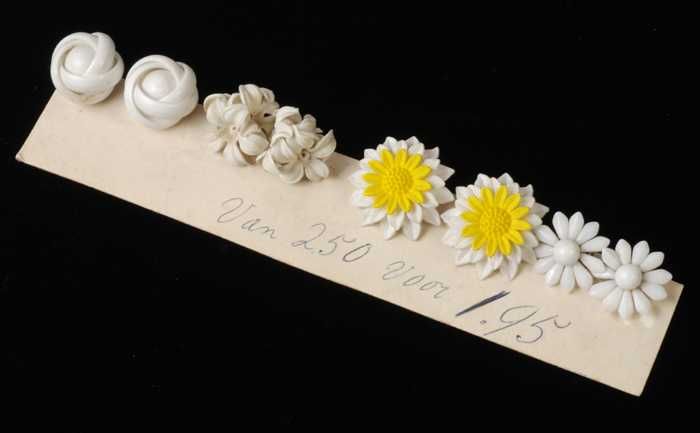 Vier paar verschillende oorbellen, clip met witte pl...