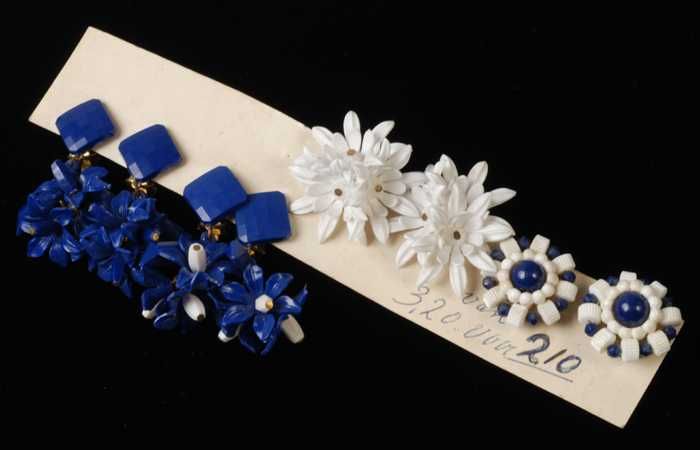 Vier paar verschillende oorbellen, clip met wit en b...