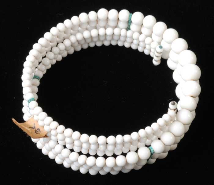 Armband, spiraalarmband met drie rijen witte glazen ...