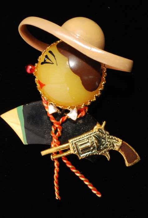 Broche, kop van een Mexicaan, geverfd goudkleurig me...