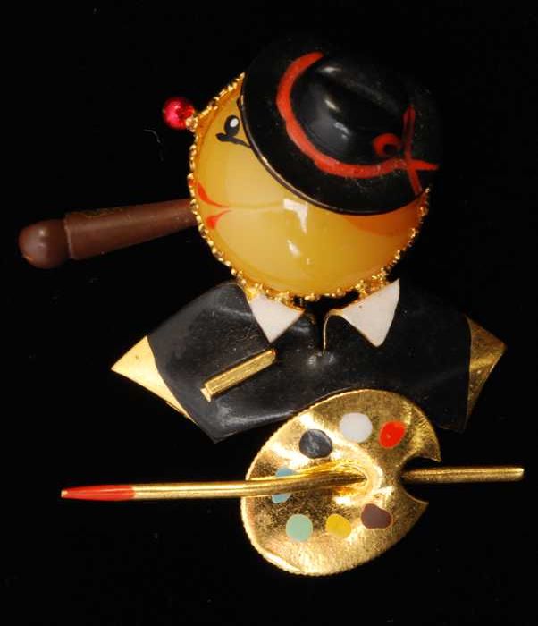 Broche, kop van een kunstenaar van geverfd goudkleur...