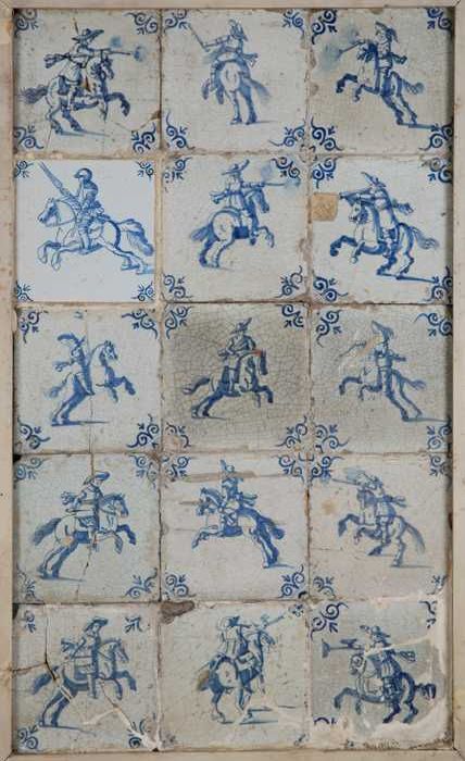 Tegelveld, vijftien tegels, blauw, ruiters met wapen...