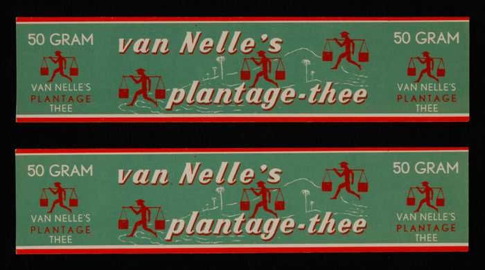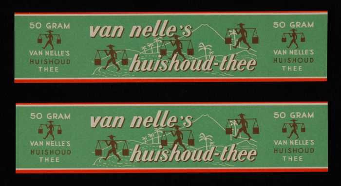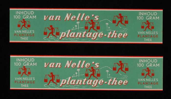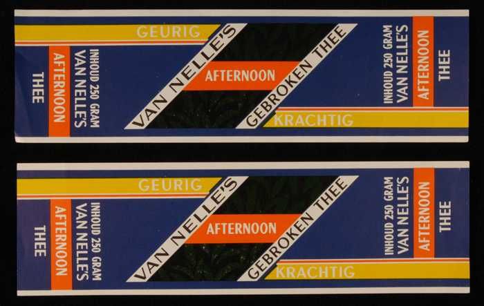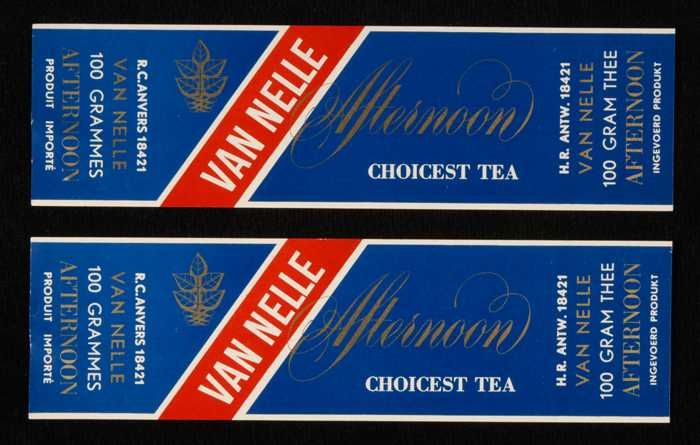 Twee blauwe, papieren labels VAN NELLE'S AFTERNOON T...