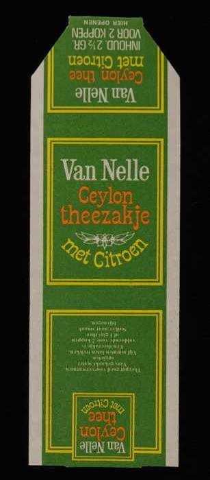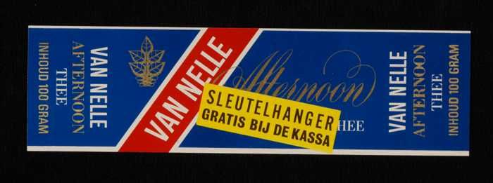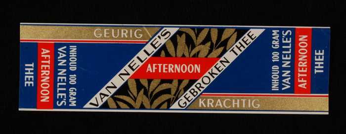 Blauw, papieren label VAN NELLE AFTERNOON THEE, B, 1...