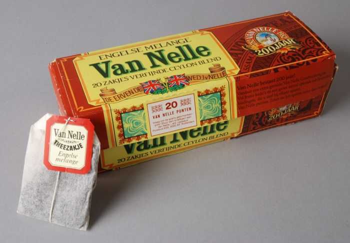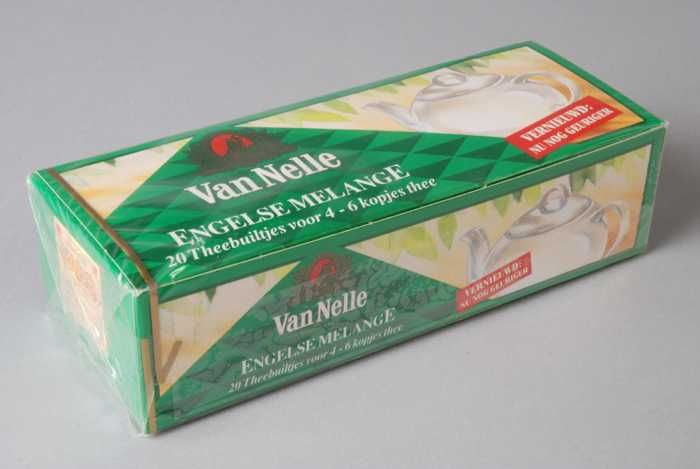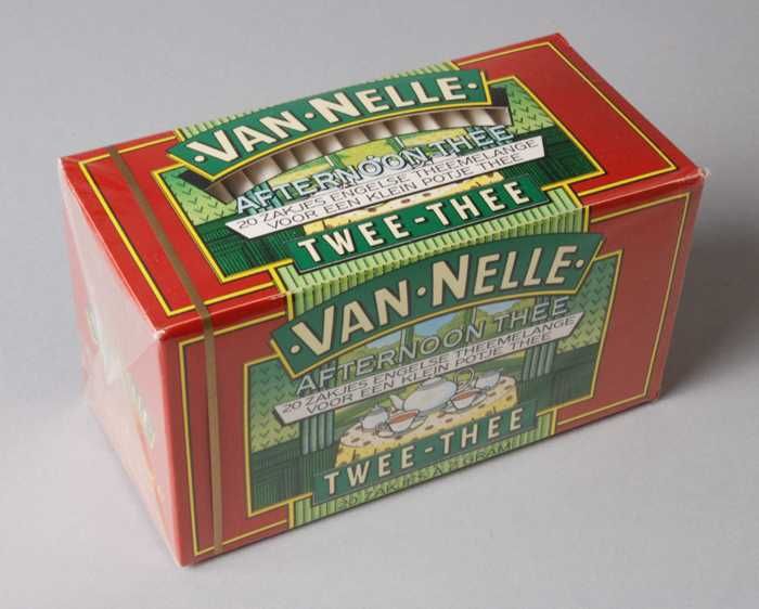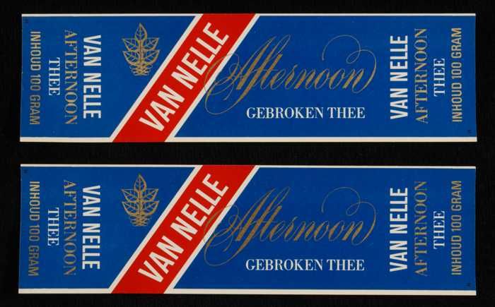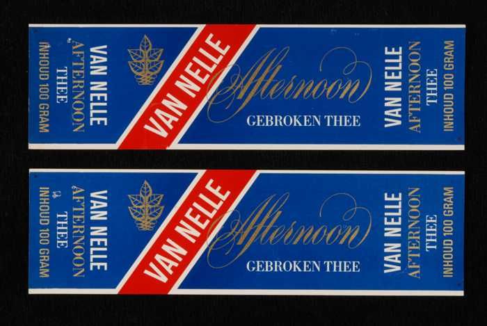 Blauw, goud en rood label VAN NELLE'S AFTERNOON THEE...