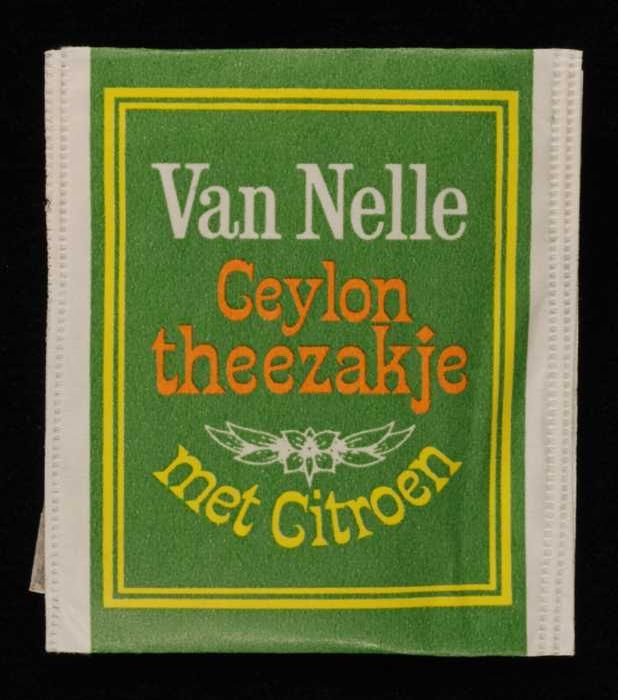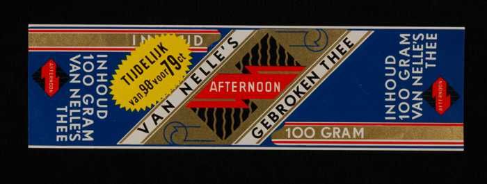Blauw, papieren label VAN NELLE AFTERNOON THEE, 100 ...