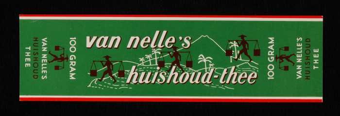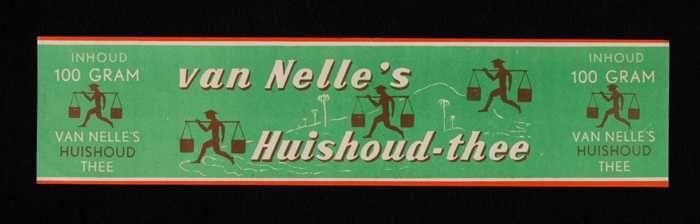 Blauw, papieren label VAN NELLE'S AFTERNOON THEE, W,...