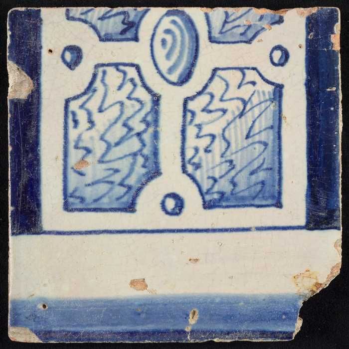 Tegel van schoorsteenpilaster, blauw op wit, deel va...