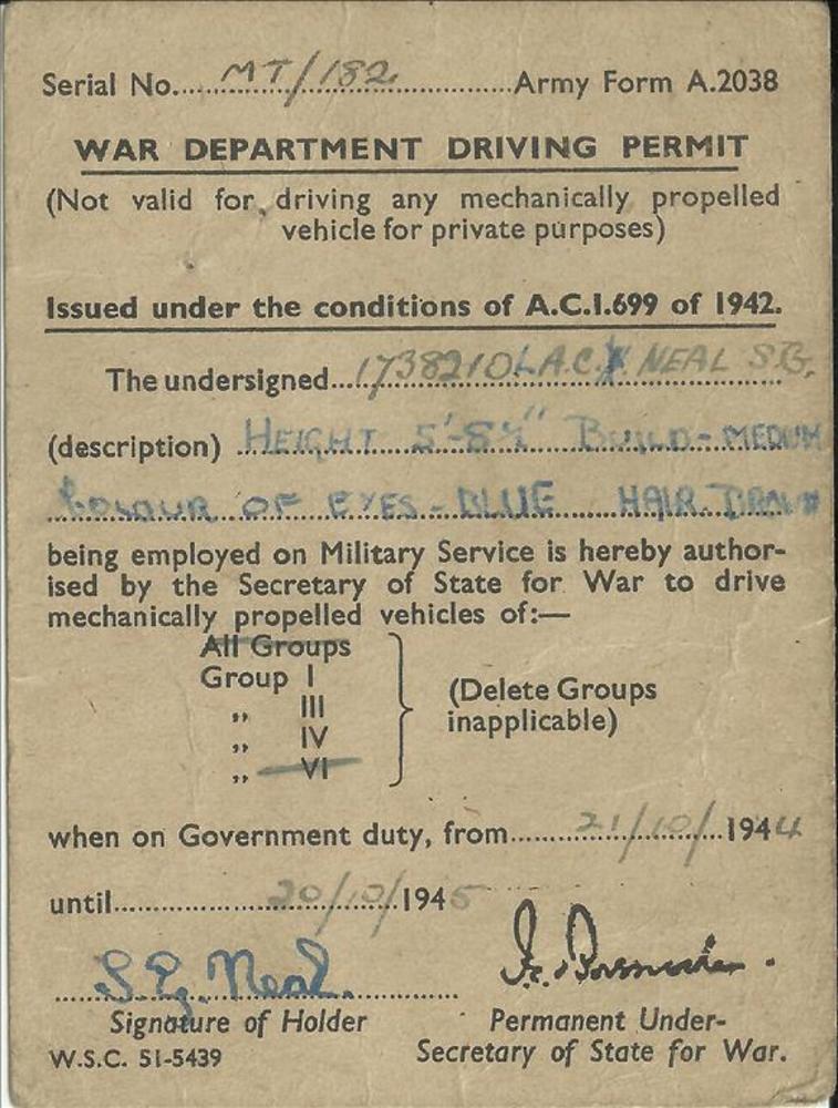 Persoonlijke documenten van Stanley George Neal