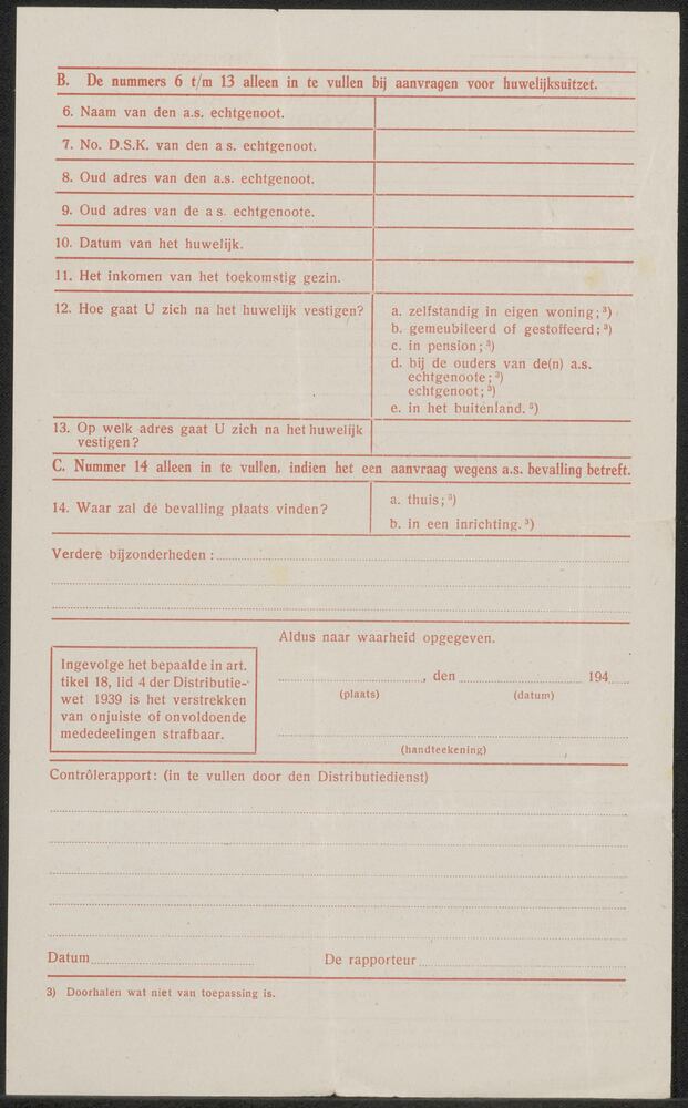 Formulier Aanvulling op aanvraag voor textiel, blanco