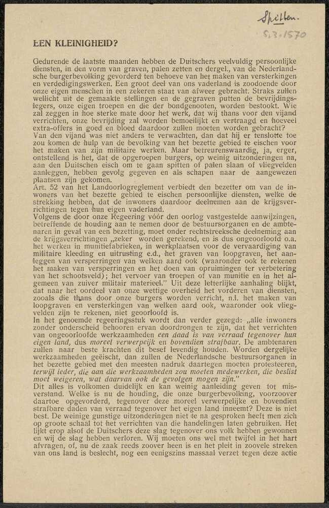 Map Illegaliteit (diverse zaken): Pamflet, A5 formaa...