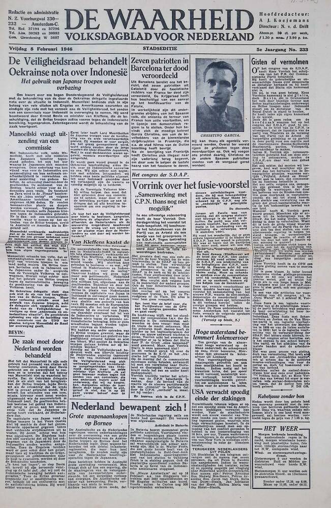 De Waarheid, 8 februari 1946, 5e jaargang no 233