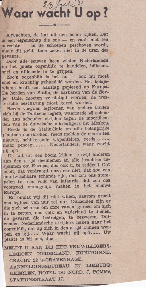 krantenknipsels Nieuwe Venlosce Courant 23 juli 1941