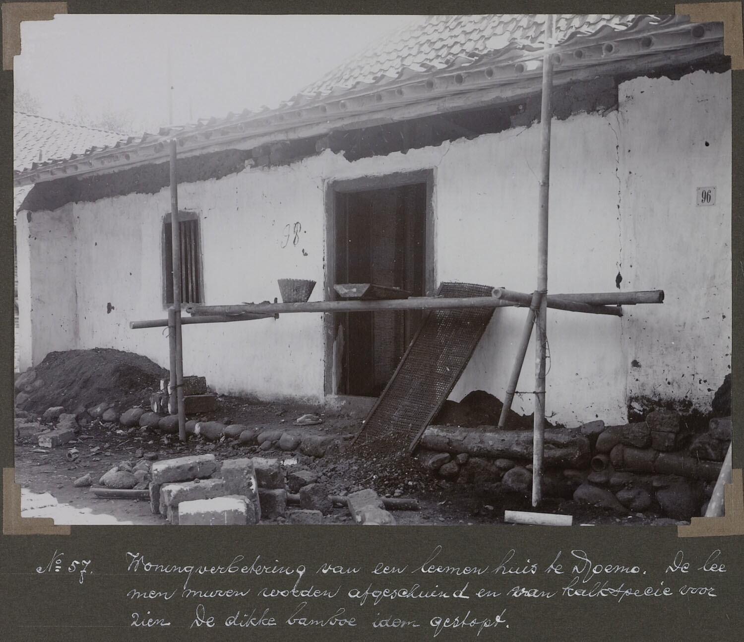 'Woningverbetering van een leemen huis te Djoemo. De...
