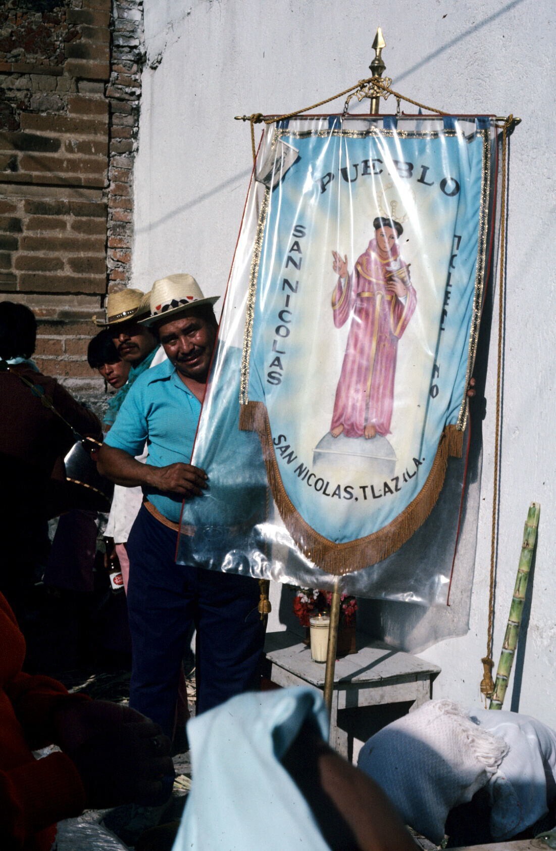 man met vaandel met afbeelding van San Nicolás