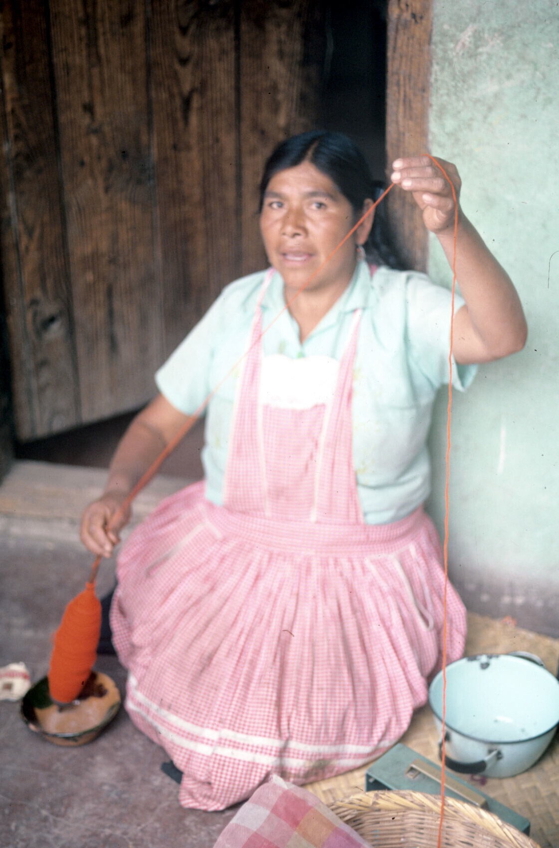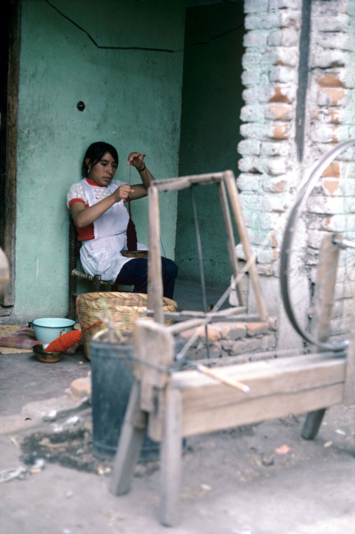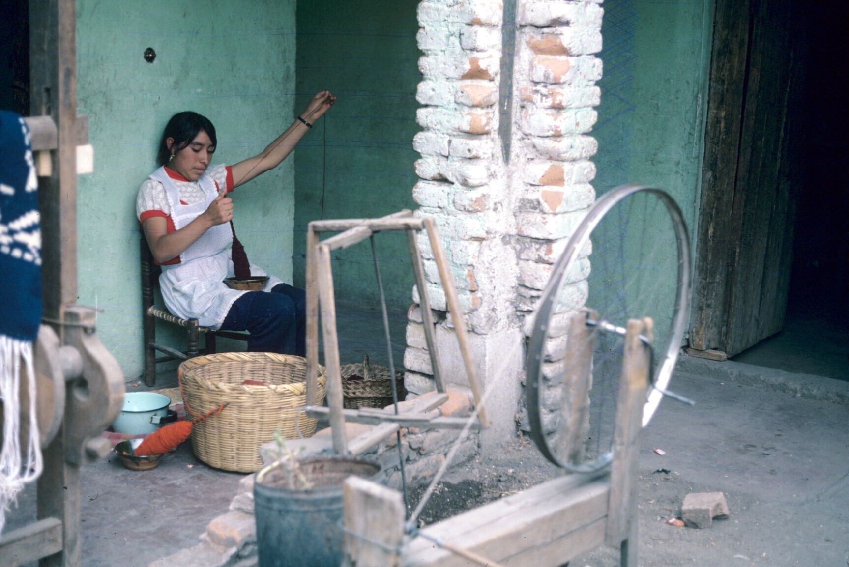 vrouw van wever Filiberto Lazcaro aan het spinnen