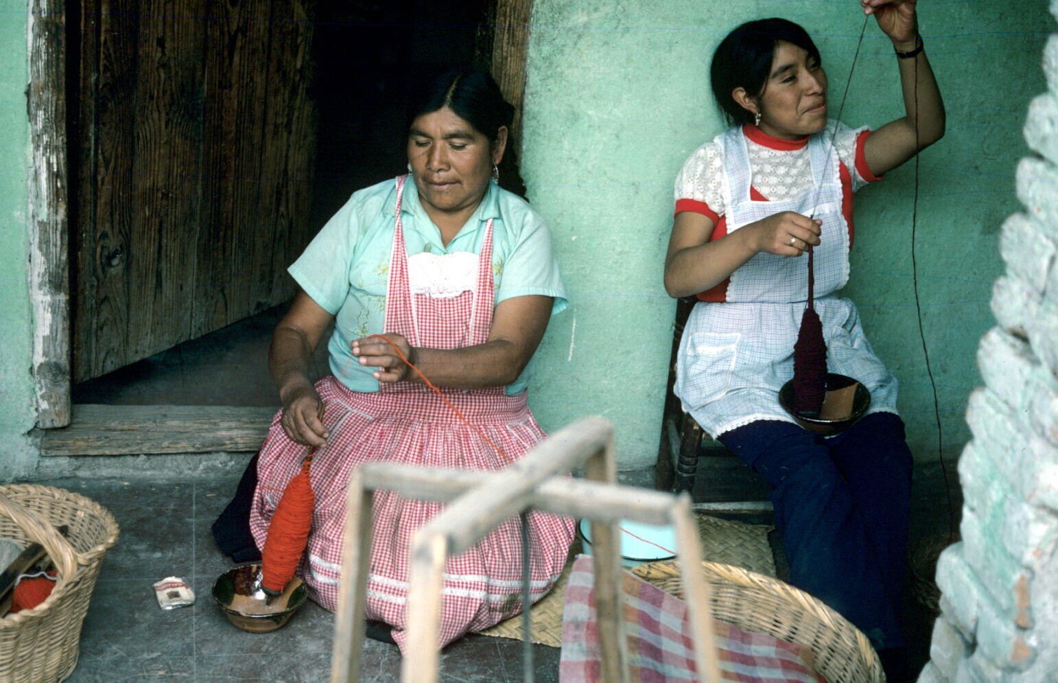 vrouw en dochter van wever Filiberto Lazcaro aan het...
