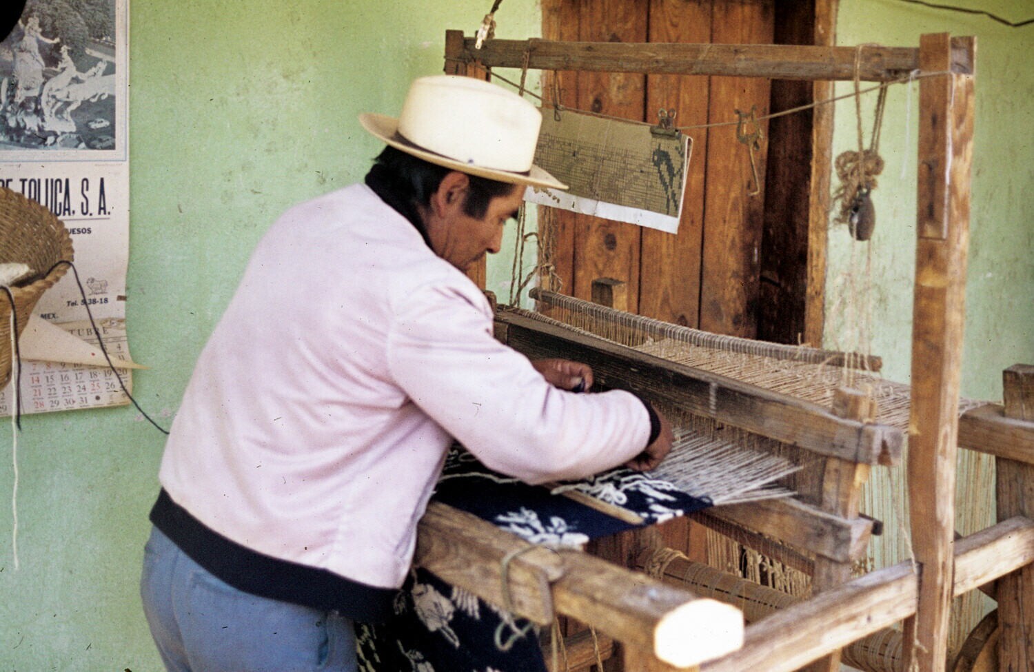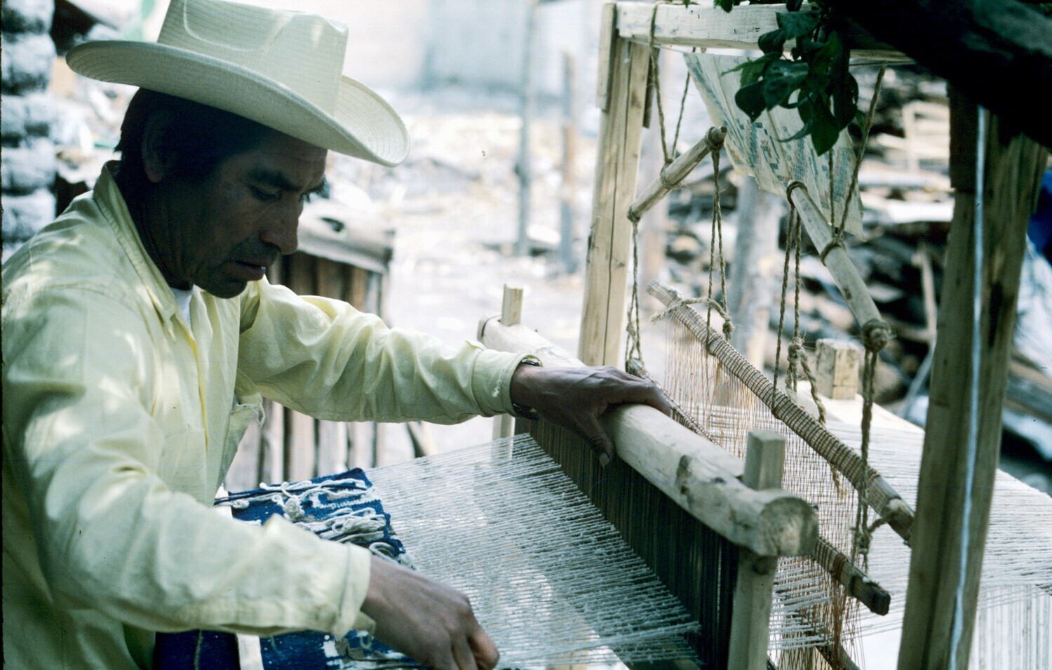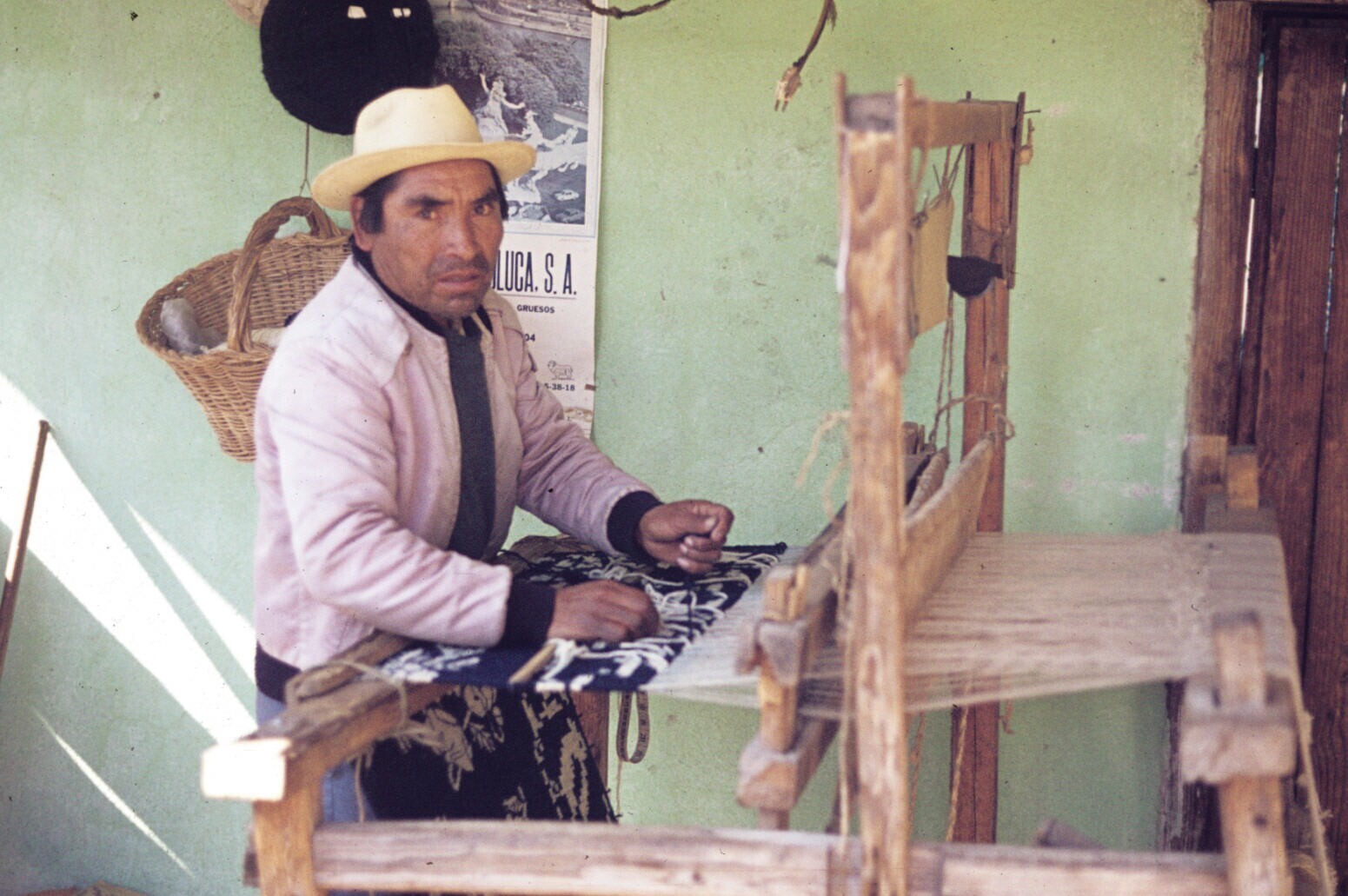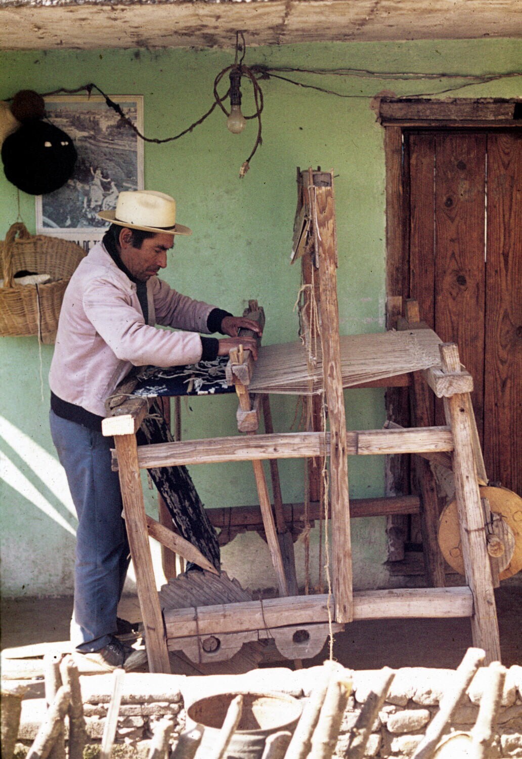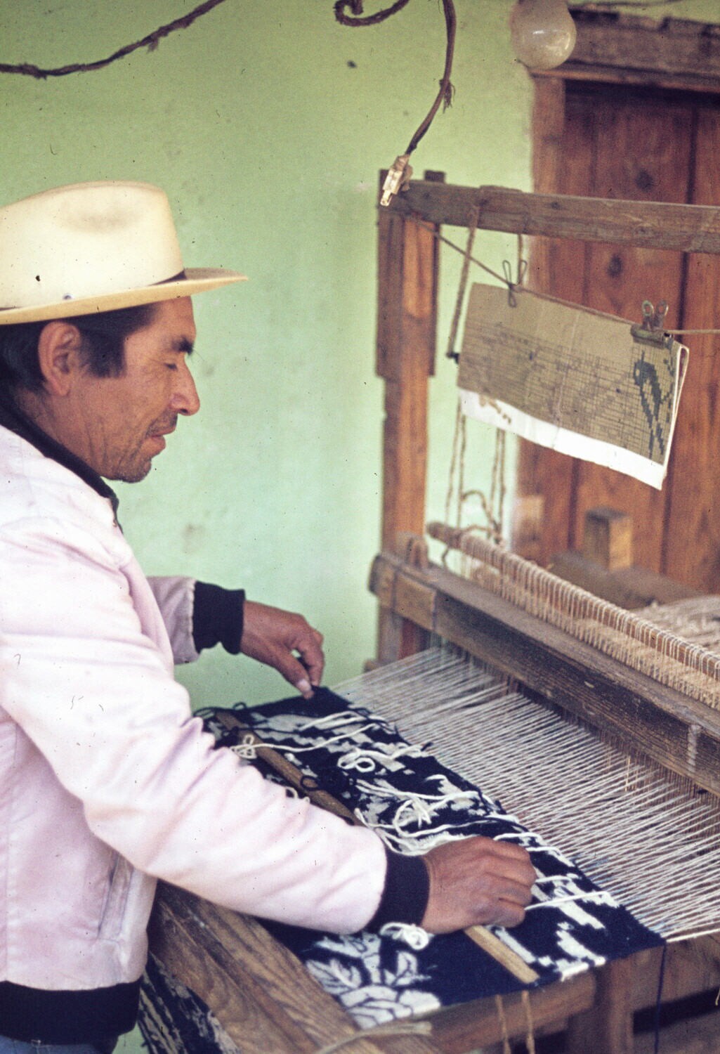 wever Filiberto Lazcaro bij koloniaal weefgetouw
