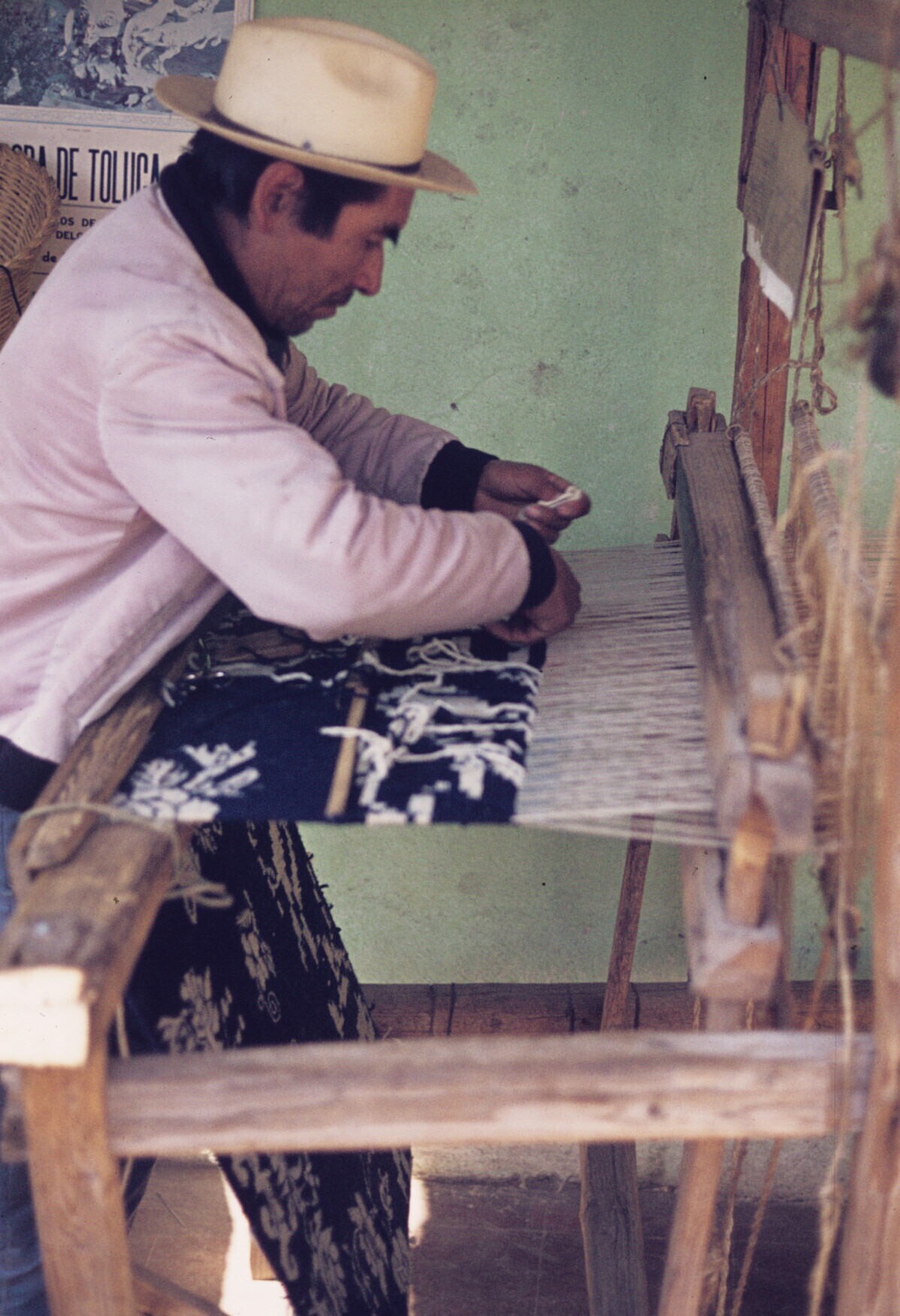 wever Filiberto Lazcaro bij koloniaal weefgetouw, ga...