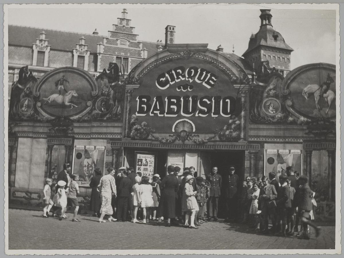 Publiek bij de facade van tent van Cirque Babusio