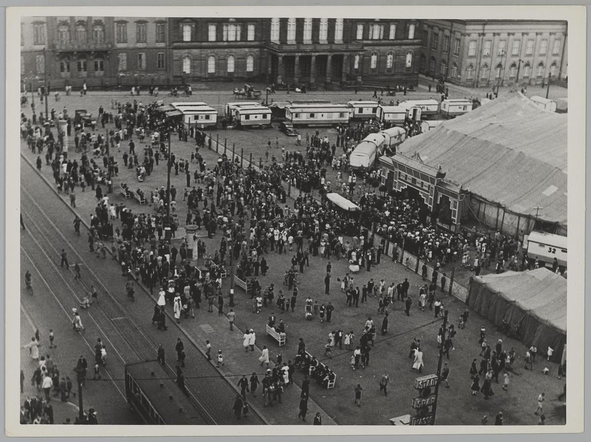 Publiek voor de ingang van Circus Schumann, Olympiad...