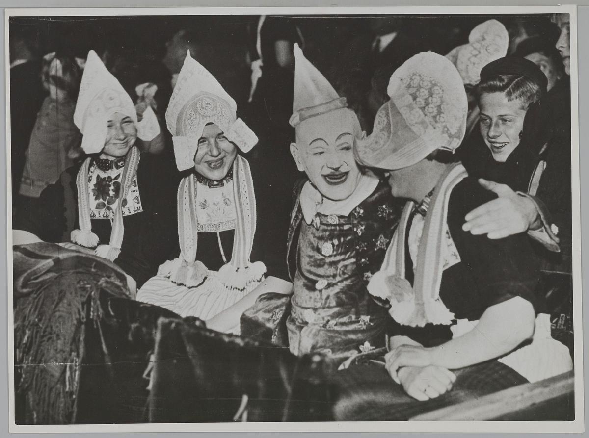 Circus P. Busch, groepje clowns, achter. Eigen gebou...