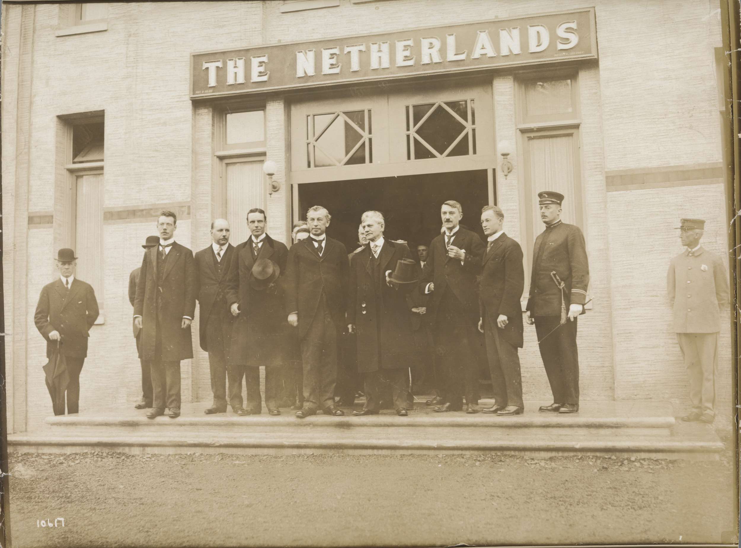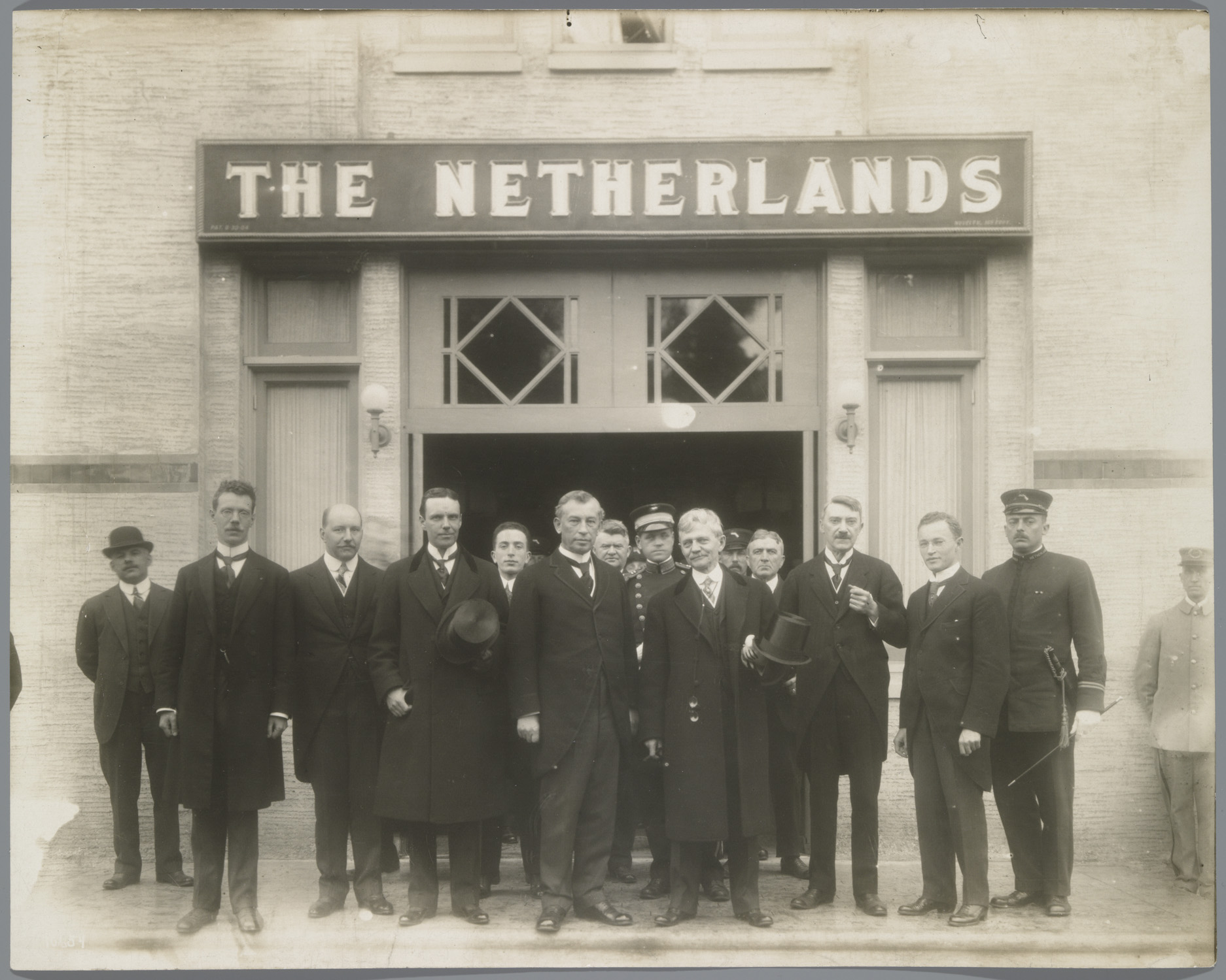 Witsen met groep voor het Nederlands paviljoen (San ...