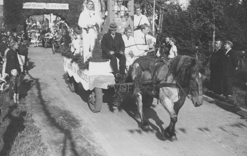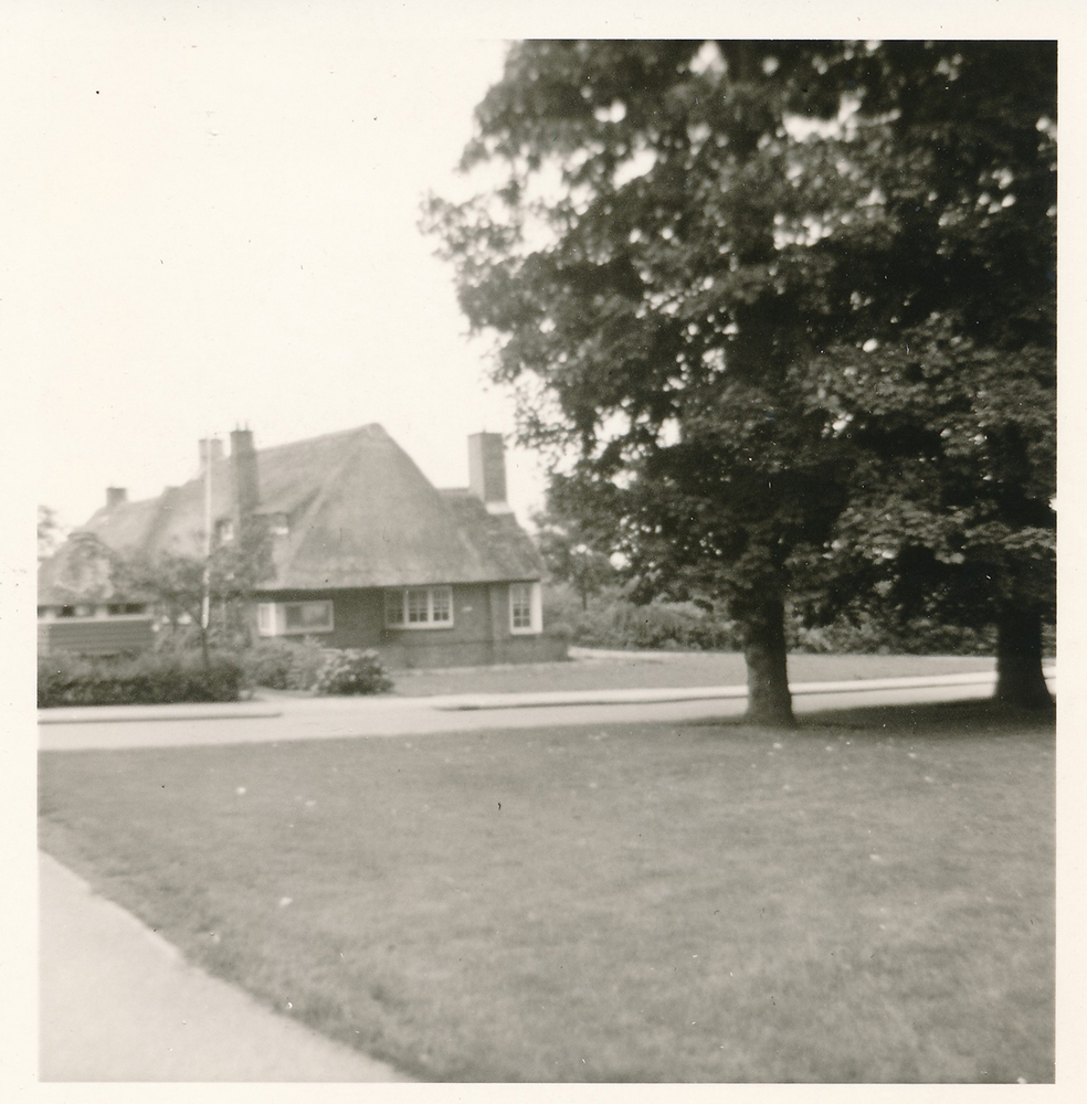 Groepsfoto Edese Esperantisten voor het gebouwtje Es...