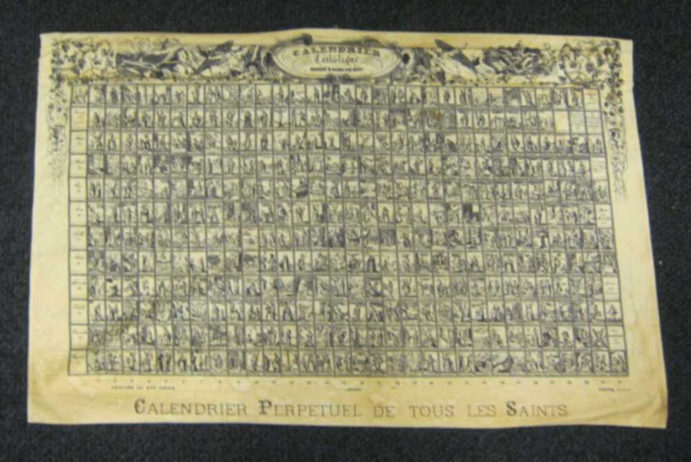 Kalender van textiel waarop per dag een bij die dag ...