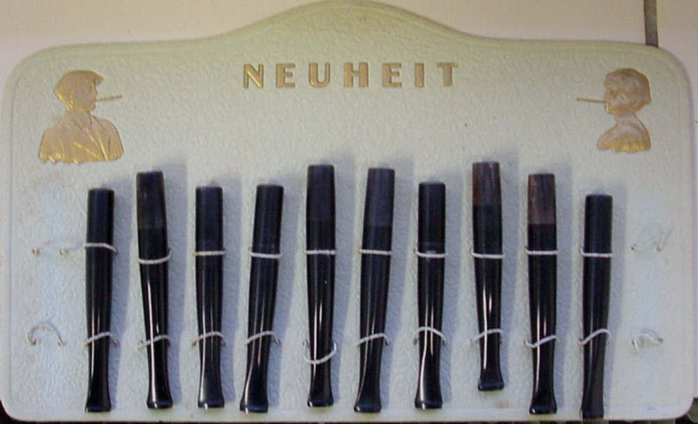 Tien sigarettenpijpjes van plastic op een voorraadka...